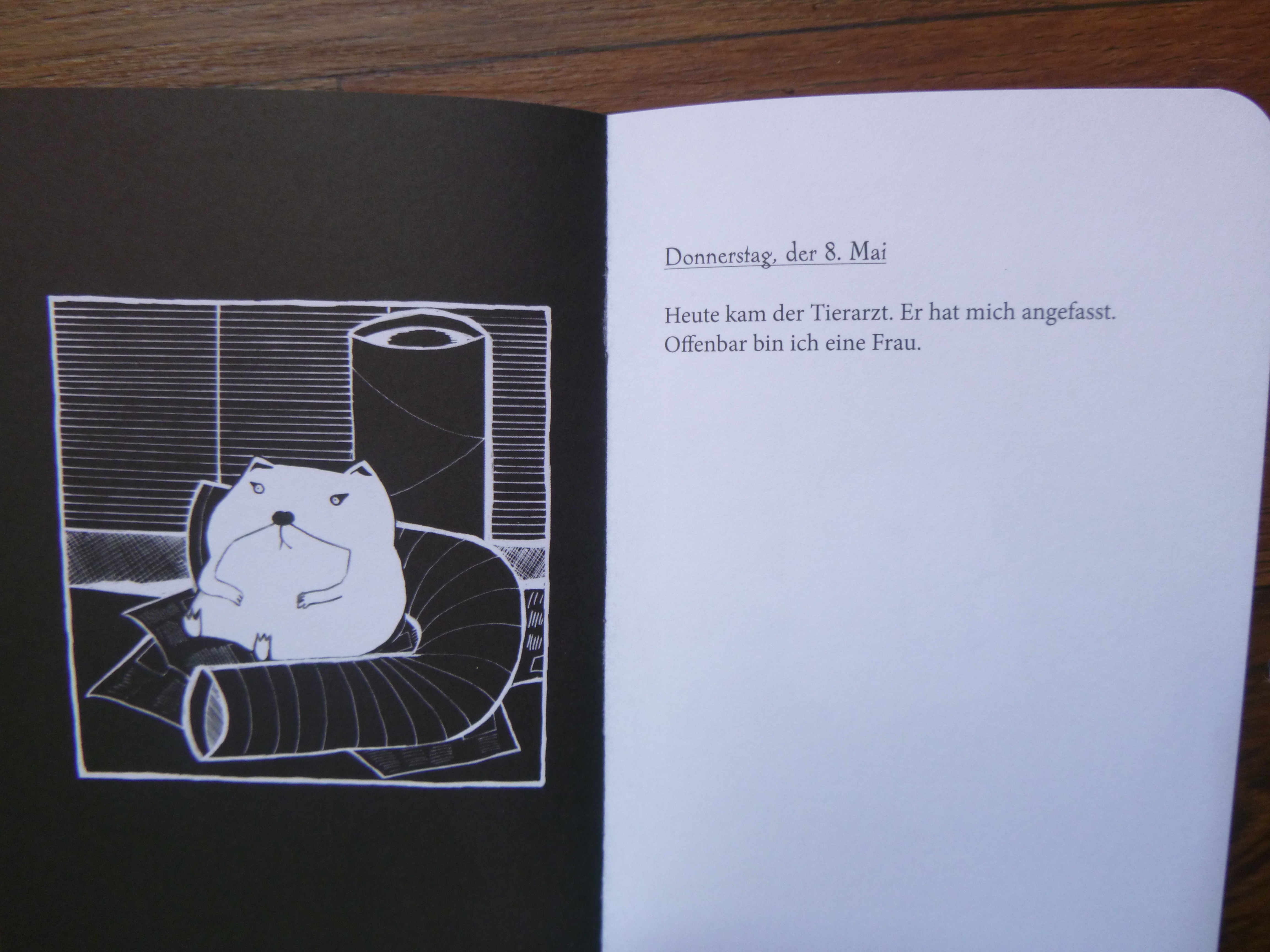 Heute kam der Tierarzt. Er hat mich angefasst. Offenbar bin ich eine Frau.Freitag, der 9. Mai